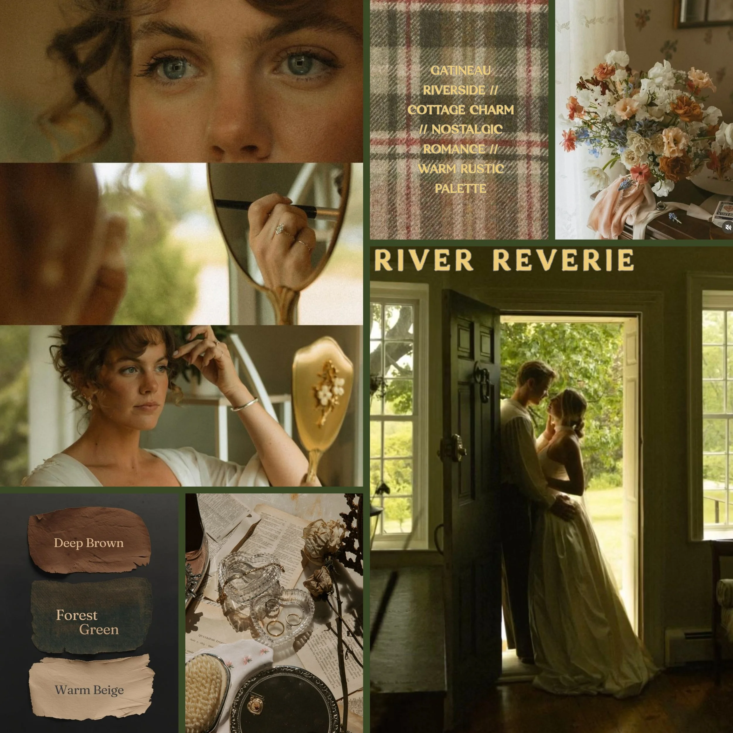 take a look at this late spring mood board; a warm and welcoming experience. A cozy, intimate cabin-style elopement focused on family heirlooms, garden paths & How-they-met details